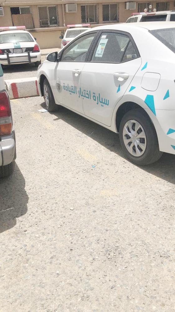 مركبة اختبار قيادة المرأة السيارة تقف داخل فناء مرور الباحة.