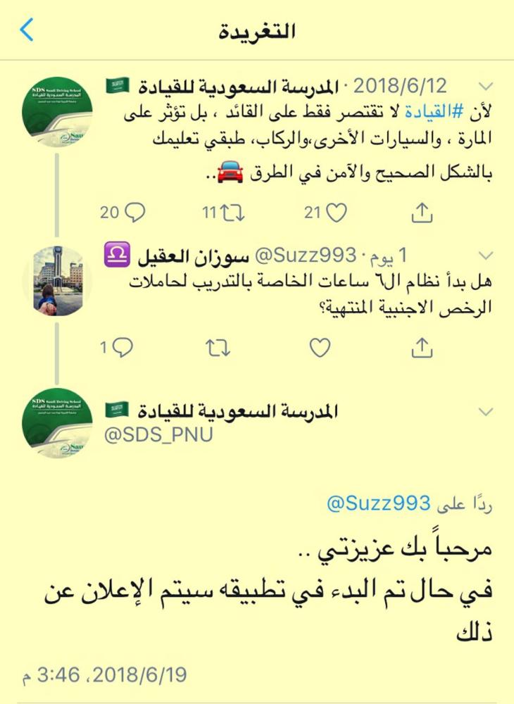 ساعات ويدخل قرار السماح للنساء بقيادة السيارة موضع التنفيذ، لتتزين الشوارع والطرق في المدن بالسيارات الناعمة. وبادرت متاجر كبرى في العاصمة الرياض بالترحيب بالسائقات وتخصيص مواقف مجانية لمركباتهن، وحملت لوحات أعدتها تلك المتاجر البشرى للسائقات بالمواقف المجانية. في الوقت الذي تنتظر عشرات السيدات والفتيات فرصة الالتحاق بالمدرسة السعودية للقيادة، وهي المدرسة الوحيدة في العاصمة، وطبقا لبعضهن فإن الانتظار امتد شهرين في ترقب للالتحاق بالمدرسة المزدحمة، وبعثت الدكتور لمياء البراهيم رسالة إلى الحساب الرسمي على منصة «تويتر» للمدرسة السعودية تستفسر فيها عن موعدها الذي مضى فيه ما يقارب شهرين، وعززت رسالتها بصورة رسالة نصية بعثتها إلى المدرسة في أبريل الماضي. وأدركت أخيرا أن التدريب بحسب الأولوية في التسجيل. وعلى ذات النسق تساءلت سيدة عن موعد السماح لتدريب حاملات الرخصة الدولية منتهية الصلاحية، إذ يتوجب عليها دراسة ست ساعات على مدى ثلاثة أيام وجاء رد المدرسة لها أنه سيتم الإعلان عن ذلك حال البدء في التطبيق. من جانبها، وصفت مديرة مختبر وبنك الدم بوزارة الصحة الدكتورة مها عبد المجيد أبو الجدايل يوم الأحد بالتاريخي لسيدات المملكة، وقالت إنها تعلمت قيادة السيارة في الخارج عندما كانت تعيش في بلد عربي وأول سيارة قادتها «رانج روفر». وأبدت أبو الجدايل حماسا للقيادة، «ليس لدي رخصة محلية.. أملك رخصة دولية وأسعى لاستكمال الإجراءات للحصول على المحلية كي أتنقل بسيارتي الرياضية الحمراء المرتقبة». وعن تجربتها في القيادة بالخارج تقول «كنت أحاول إثبات ذاتي في زحام المواقف، كان الجميع يتسابقون للحصول على مكان لا يفرق بين الرجل والمرأة».