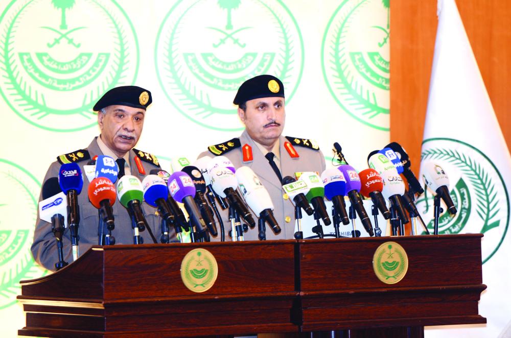 اللواء التركي والبسامي خلال إجابتيهما في المؤتمر الصحفي أمس. (تصوير: ماجد الدوسري)