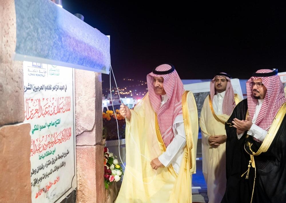 دشّن أمير منطقة الباحة الأمير الدكتور حسام بن سعود بن عبدالعزيز، أمس (الأحد)، مشروع توسعة طريق متنزه رغدان وإنشاء طرق داخلية ومواقف للسيارات ومرافق عامة، التي نفذتها أمانة منطقة الباحة بتكلف بلغت نحو 12 مليون ريال.