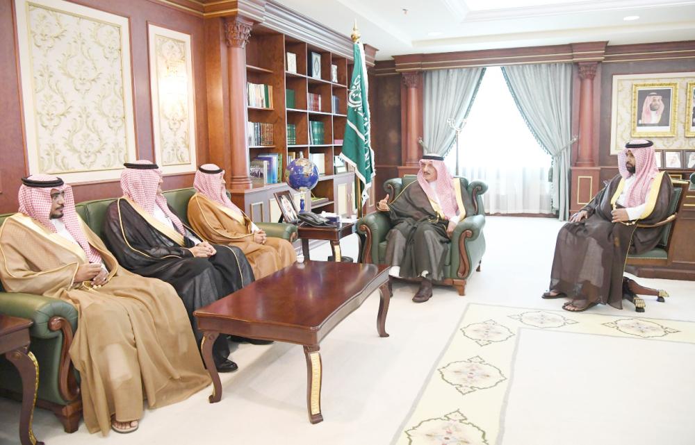 الأمير محمد بن ناصر مستقبلا مدير ووكلاء ومنسوبي جامعة جازان. (عكاظ)
