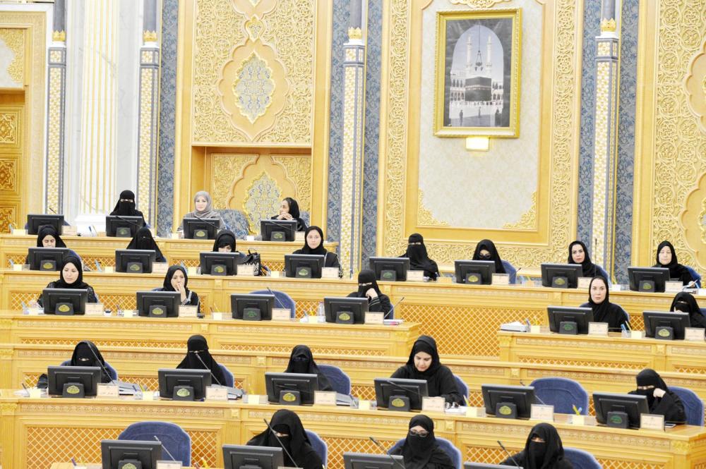 عدد من عضوات الشورى خلال الجلسة. (عكاظ)