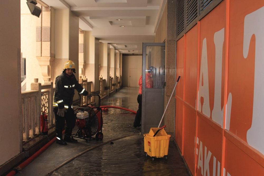 وأضاف الشريف: تم إخلاء جميع الموجودين احترازيا عن طريق وحدات الإنقاذ، في حين باشر فريق التحقيق بالإدارة التعرف على مسببات الحادثة بالتنسيق مع الجهات المعنية.