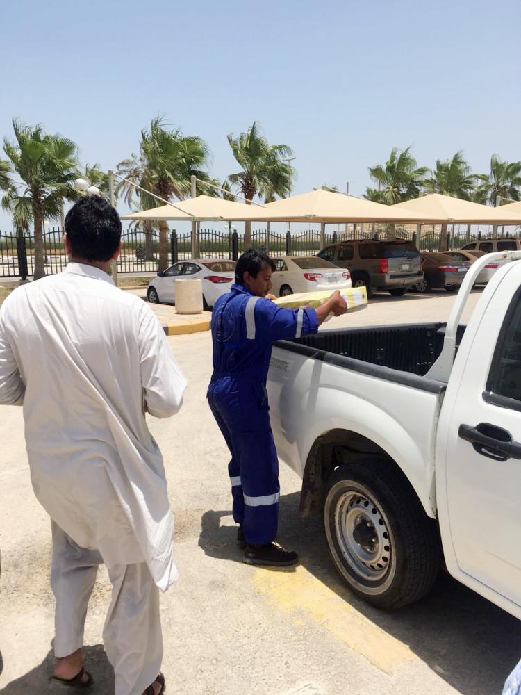 ضبط مراقبو بلدية رأس تنورة ما يقارب 160 كيلو غراما من اللحوم مجهولة المصدر في سيارة نقل تفتقر لاشتراطات التعبئة والنقل.