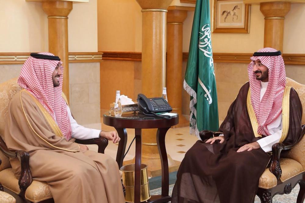 عبدالله بن بندر خلال استقباله الأمير عبدالعزيز بن تركي الفيصل.