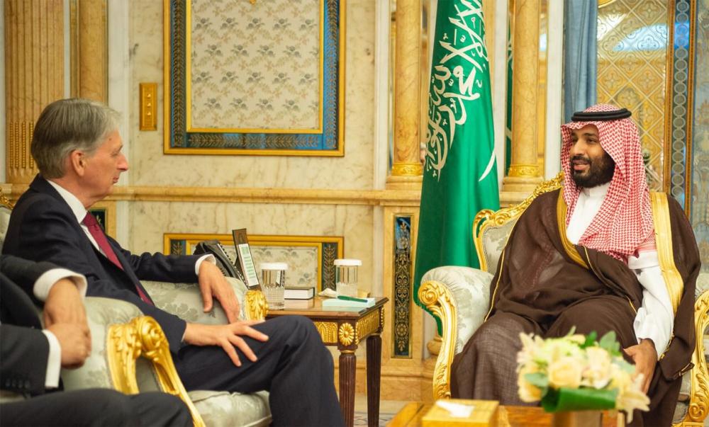 التقى ولي العهد نائب رئيس مجلس الوزراء وزير الدفاع الأمير محمد بن سلمان بن عبدالعزيز في جدة أمس (الإثنين) وزير الخزانة البريطاني السيد فيليب هاموند.