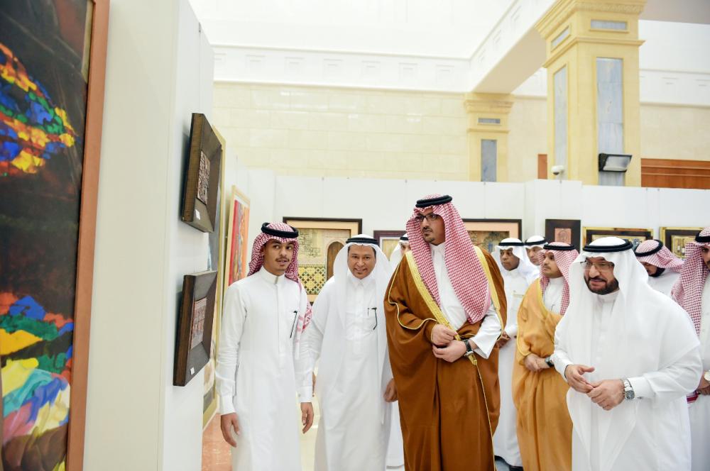 الأمير سعود بن خالد متجولاً في المعرض الفني.