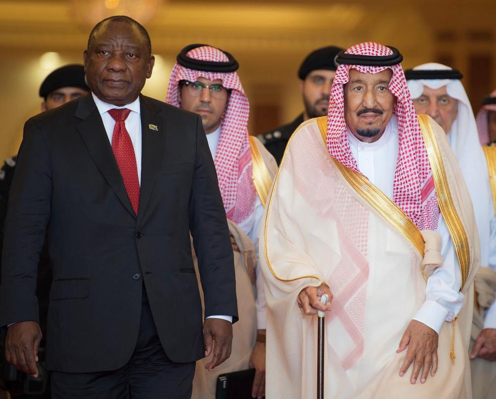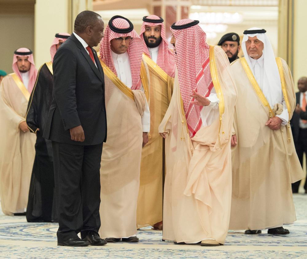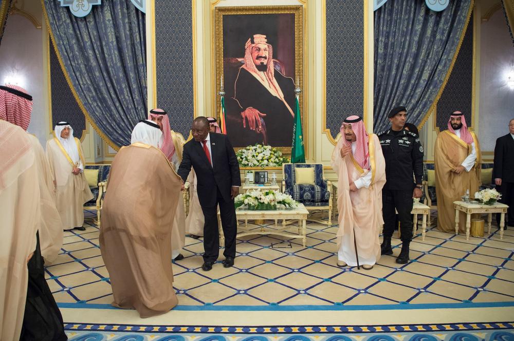 حضر جلسة المباحثات، مستشار خادم الحرمين الشريفين أمير منطقة مكة المكرمة الأمير خالد الفيصل بن عبدالعزيز، ووزير الدولة عضو مجلس الوزراء مستشار خادم الحرمين الشريفين الأمير الدكتور منصور بن متعب بن عبدالعزيز، ووزير الداخلية الأمير عبدالعزيز بن سعود بن نايف بن عبدالعزيز، ووزير الدولة عضو مجلس الوزراء الدكتور مساعد بن محمد العيبان، ووزير المالية محمد بن عبدالله الجدعان، ووزير الدولة للشؤون الخارجية الدكتور نزار بن عبيد مدني، ووزير الدولة لشؤون الدول الأفريقية أحمد بن عبدالعزيز قطان (الوزير المرافق)، وسفير خادم الحرمين الشريفين لدى جمهورية جنوب أفريقيا غرم بن سعيد الملحان.