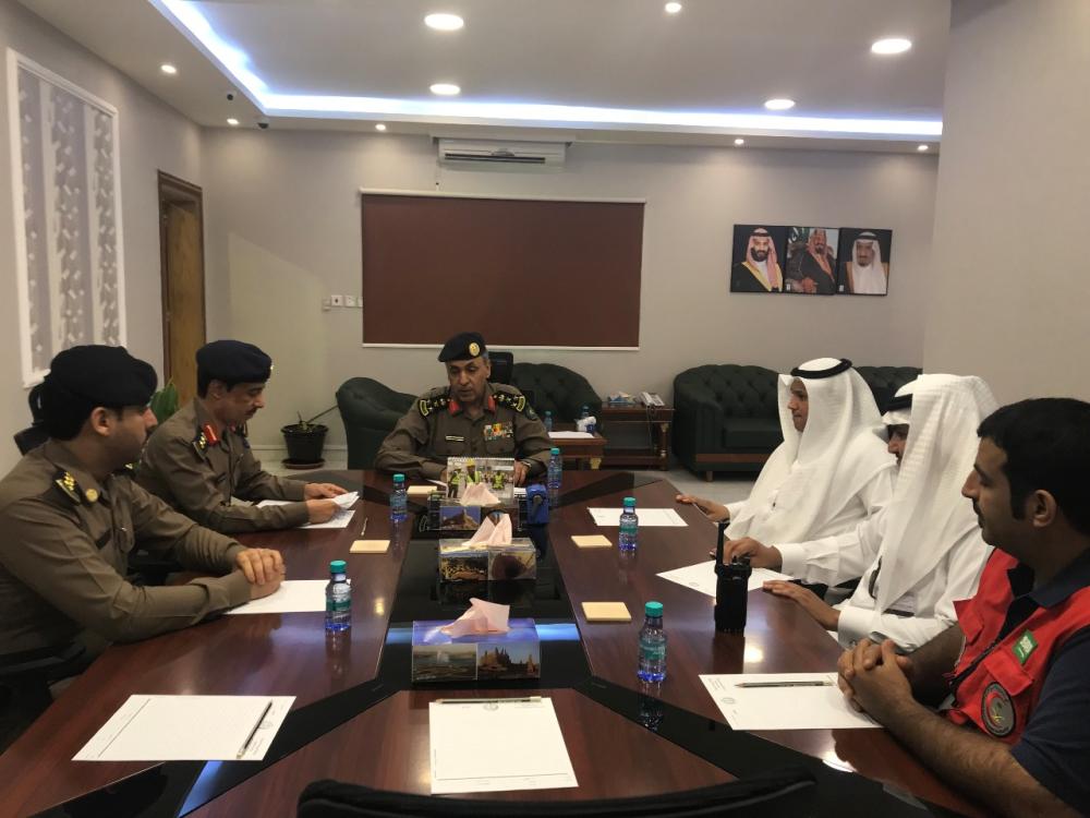 كما جرى بحث تدريب منسوبي الدفاع المدني على برنامج الإسعافات الأولية الذي تقدمه هيئه الهلال الأحمر.