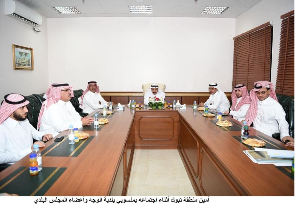 وكان أمين منطقة تبوك قد اجتمع برئيس بلدية الوجه المهندس سلامة بن هليل البلوي، ومدراء الأقسام وأعضاء المجلس البلدي بالمحافظة.