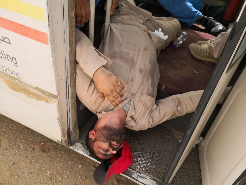 وتم إعلان الحادث عند الساعة ٩٫٤١ صباحاً، وعلى الفور تم تحريك فرقتين طبية من الإسناد المركزي التابع لإدارة الطوارئ والكوارث ودعم بفرقتين طبية من شفا ٤ وفرقتين طبية من الهلال الأحمر للموقع.