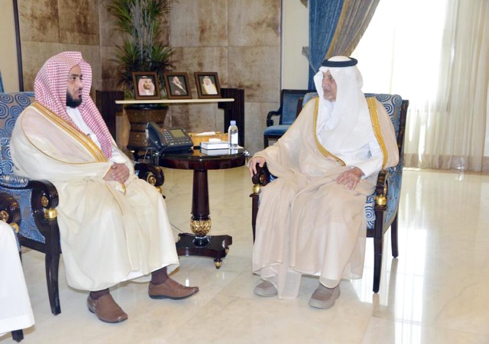 الأمير خالد الفيصل مستقبلا العضيبي. (عكاظ)