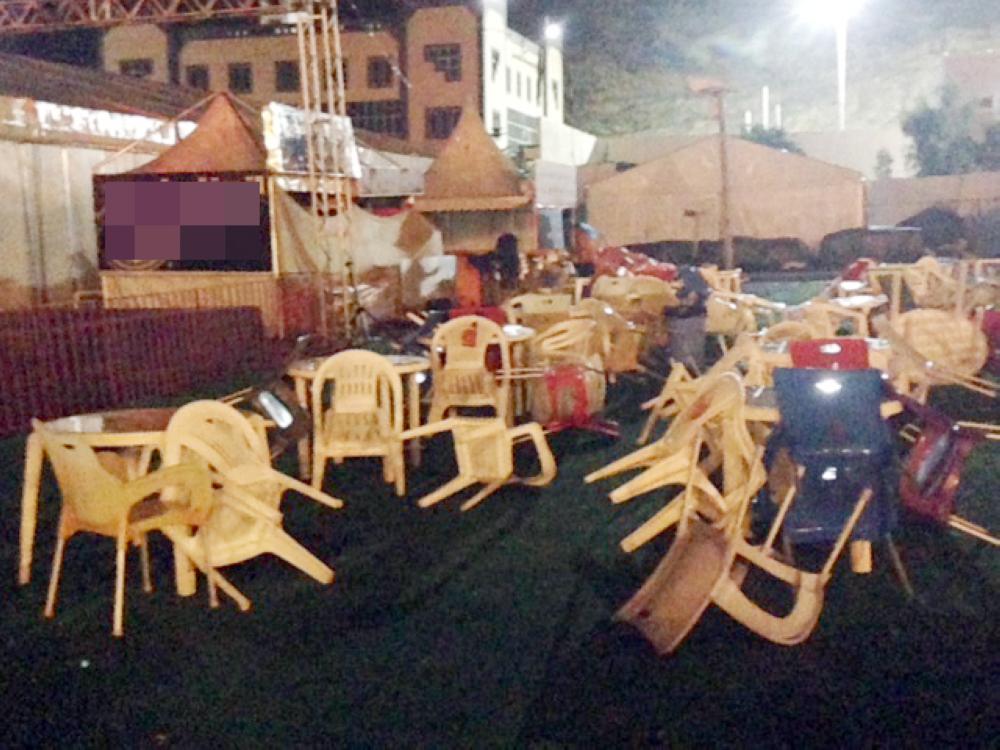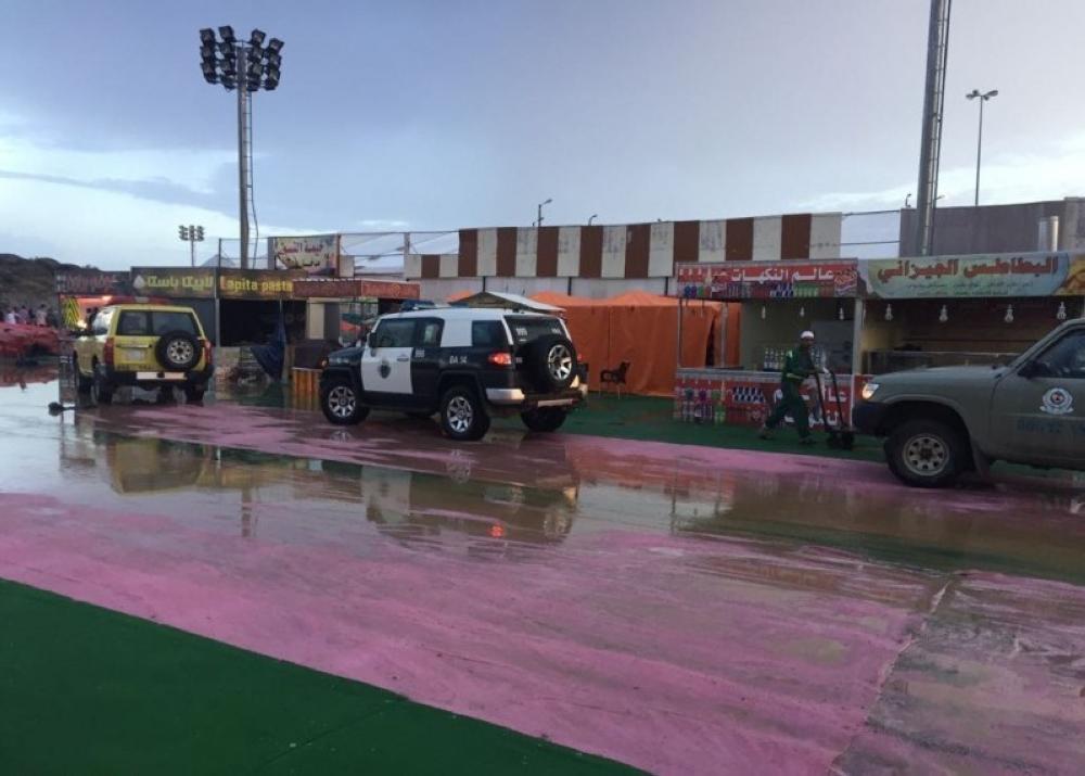 من جانبه، أوضح المشرف على مهرجان المندق، بأن الخيمة المخصصة للمهرجان مقاومة للحريق وللأمطار والسيول، مؤكدا سلامة 70 مشاركاً في فعاليات المهرجان من أي أضرار في ممتلكاتهم ومعروضاتهم، كما أن الأكشاك الموجودة في ساحة المهرجان لم تتعرض لأي ضرر جراء الأمطار الغزيزة.