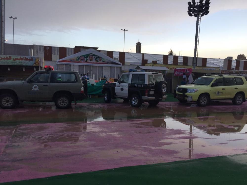وأشار إلى إغلاق المخيم احترازيا بحضور وتواجد فرقة السلامة من الدفاع المدني وقت نزول الأمطار حفاظا على سلامة الزوار.