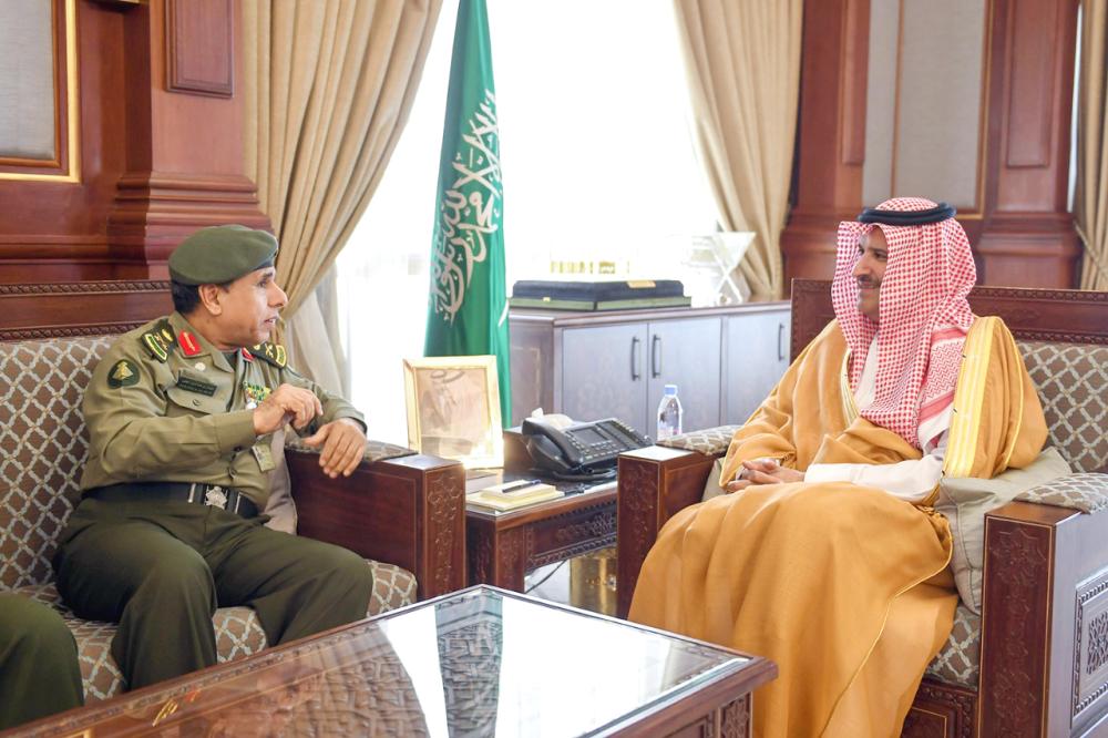 جاء ذلك خلال استقباله في مكتبه بالإمارة أمس، المدير العام للجوازات اللواء سليمان بن عبدالعزيز اليحيى، والوفد المرافق له.