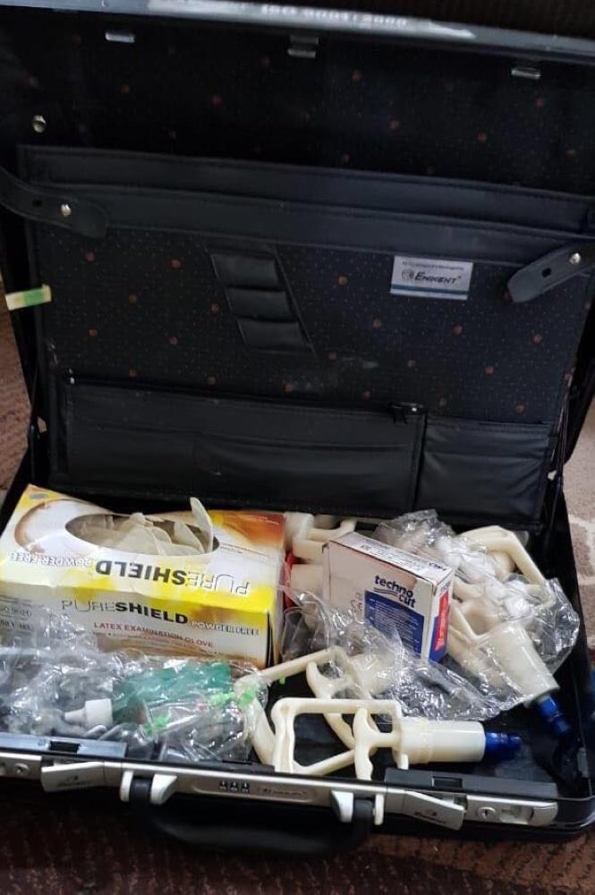 أدوات الحجامة التي تمت مصادرتها من الممارس غير المرخص.