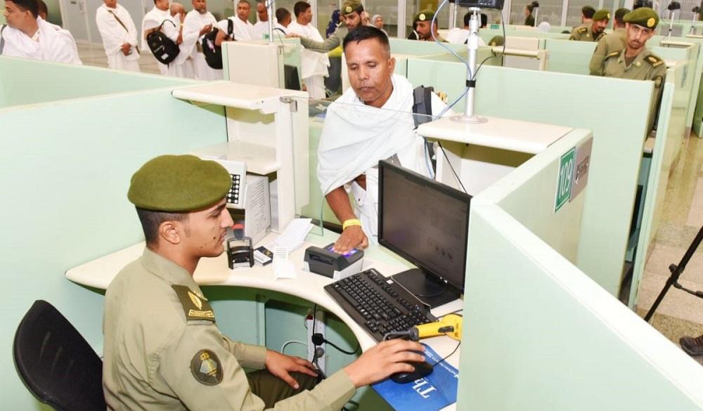 تدقيق بصمة أحد الحجاج القادمين من خارج المملكة