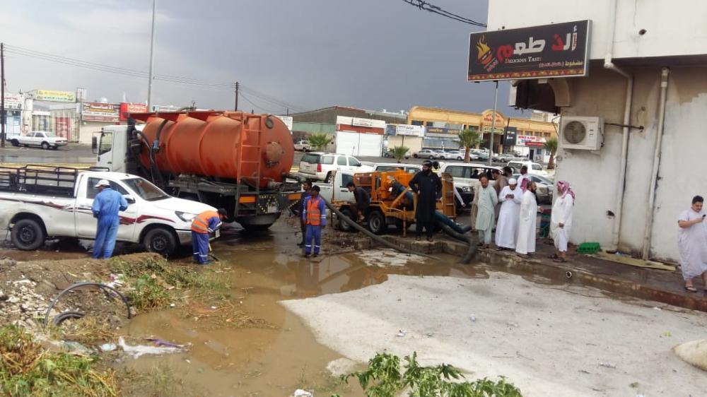 يذكر أن بلدية المحافظة باشرت الموقع بطاقة بشرية بلغت 57 شخصاً وأكثر من 25 مُعِدة ما بين مضخات وشاحنات شفط المياه و4 شيولات وبوكلين، وتم نزح المياه وتنظيف مجرى السيل.