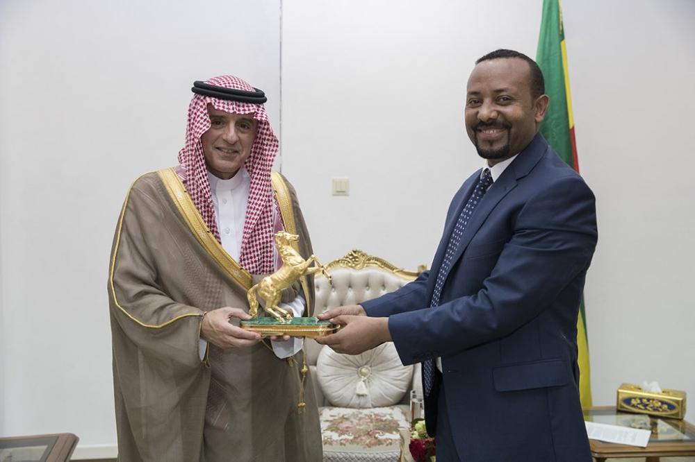 وقال الجبير: «نقلت لرئيس الوزراء الإثيوبي تحيات خادم الحرمين وولي عهده، وكانت فرصة لبحث العلاقات الثنائية وسبل تعزيزها في كافة المجالات، خدمةً لمصالح البلدين وأمن واستقرار المنطقة».