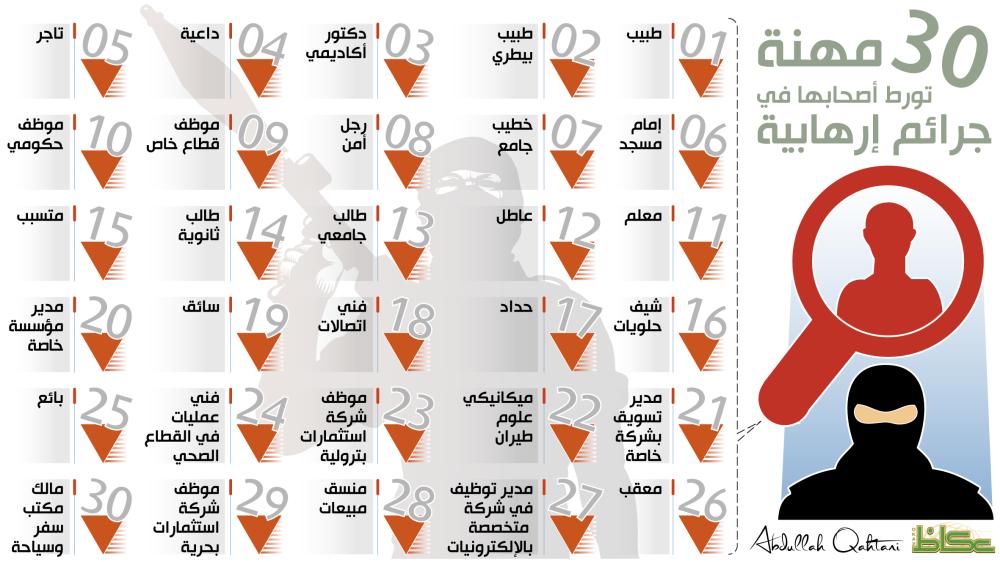 وبرهنت القضايا الكبرى التي نظرت في أروقة المحكمة المخصصة على أن المحصل العلمي أو الوظيفي لم يمنع أصحابه من التورط في أنشطة إرهابية ما يثبت أن العمل الإرهابي بجميع أشكاله وأفعاله يعتمد في أهم ركائزه على الاقتناع بالأفكار الضالة المتطرفة، كما أن امتلاك الوظيفة من عدمه ليس سببا في تورط متهمين في القضايا الإرهابية، فمن بين المتورطين من هم في مجال التجارة وموظفون يشغلون مناصب كمديري إدارات ورجال أمن ومعلمين وأئمة مساجد وأطباء ومع ذلك سقطوا في وحل التطرف والأفكار الإرهابية الهدامة.