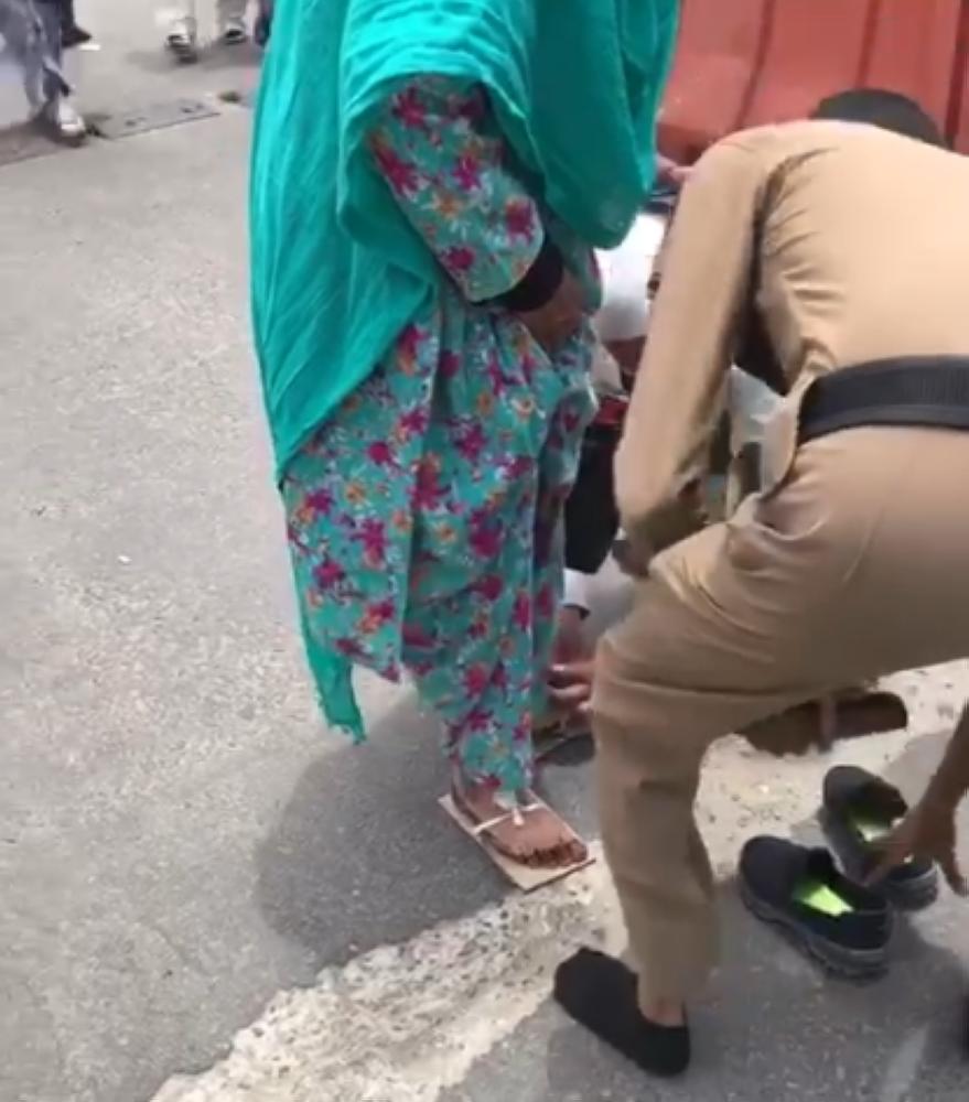 في مشهد إنساني.. رجل أمن يُقدِّم حذاءه لحاجة باكستانية