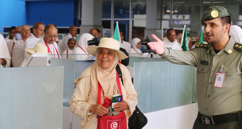وأشار مدير صالات الحج في مطار الملك عبدالعزيز إلى بادرة «حياكم» فريق ترحيب خاصة بالجوازات ويعمل في منطقة تقع قبل كاونترات الجوازات ويقوم بالترحيب بالحاج وتسهيل إجراءاته وإجابة أي استفسارات يحتاجها. وأضاف أن عددا كبيرا من الضباط يتعاملون مع الحجاج بلغاتهم الإنجليزية والفرنسية والروسية والأوردو، بالإضافة إلى الاستعانة بعدد من المترجمين بهدف سرعة إنهاء إجراءات الحجاج وتسهيلها.