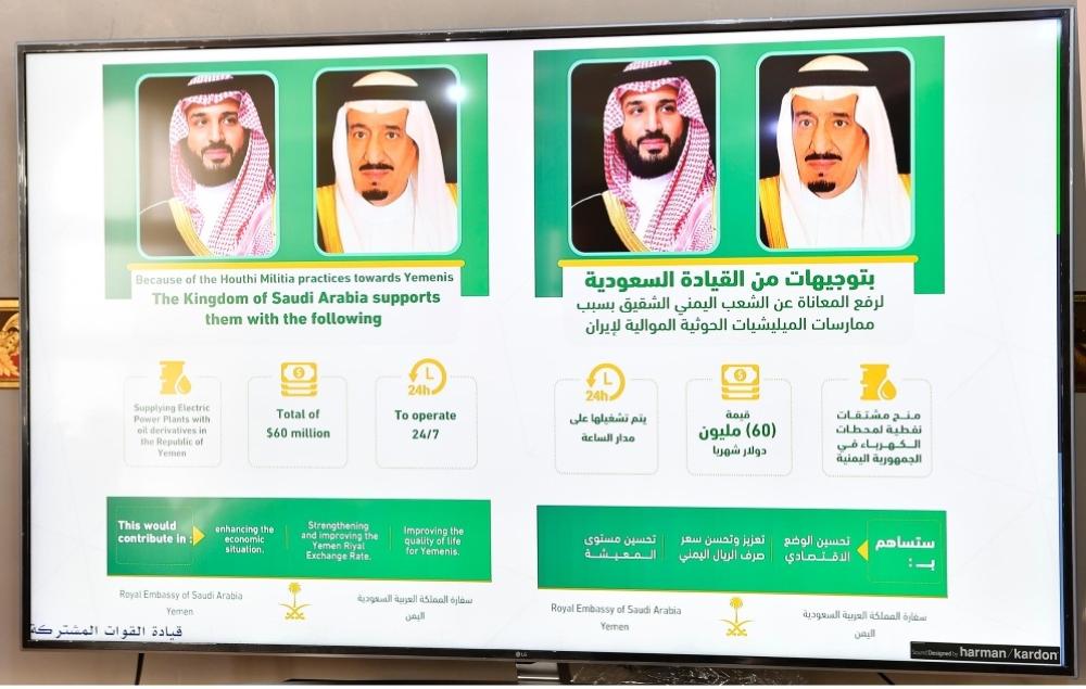 في الجانب الإنساني، أوضح العقيد الركن تركي المالكي أن القيادة الرشيدة وعلى رأسها خادم الحرمين الملك سلمان بن عبدالعزيز، وولي عهده تبرعت للجمهورية اليمنية بـ60 مليون دولار شهرياً لرفع المعاناة لتوفير الوقود لمحطات الكهرباء بسبب الممارسات التي ارتكبتها الميليشيات الحوثية الموالية لإيران، مشيداً بمركز الملك سلمان للإغاثة والأعمال الإنسانية على جهوده المتواصلة لدعم الشعب اليمني، مضيفاً أن مركز الملك سلمان للإغاثة قدم المساعدات لـ5.374.736 مستفيداً.