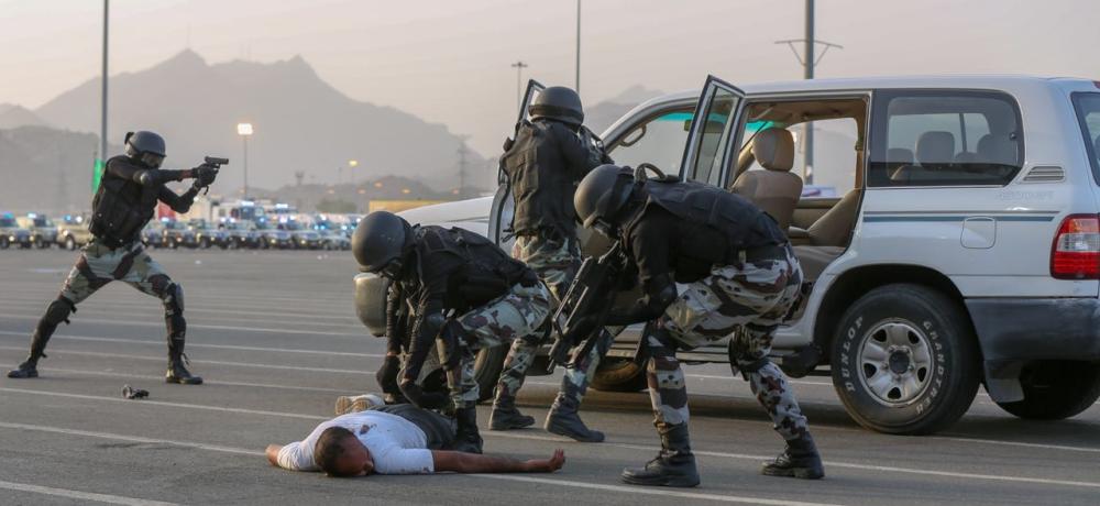 واستعرضت قوات أمن الحج التي بدت على أهبة الاستعداد، جاهزيتها من خلال السيارات المجهزة والمنتشرة لكل قطاع، والسلالم المعلقة والطلعات الجوية، والآليات والمدرعات وطيران الأمن المستخدمة في مجال مكافحة الإرهاب والمهمات الأمنية.
