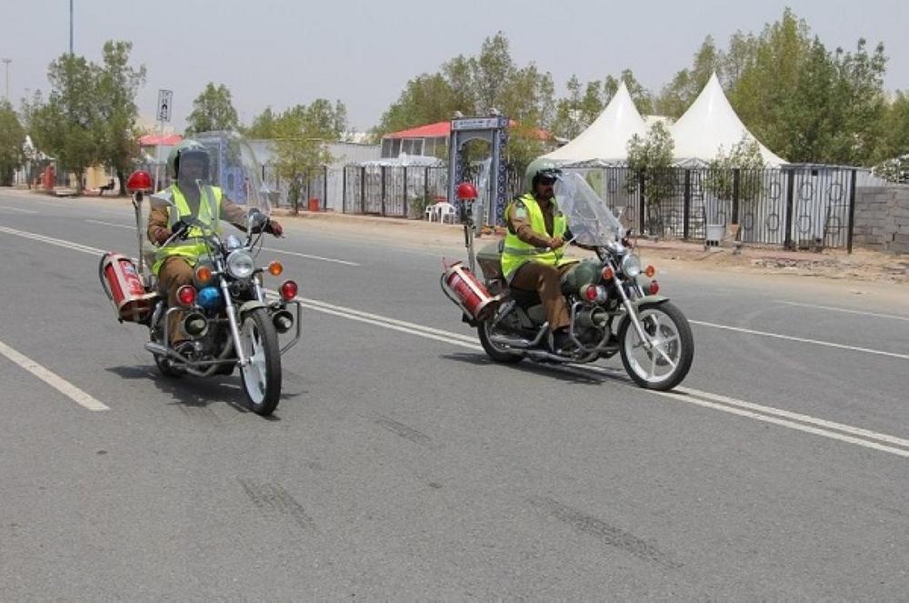 هيَّأت المديرية العامة للدفاع المدني لمواجهة الطوارئ بالحج، عدد كبير من فرق الدراجات النارية لخدمة حجاج بيت الله الحرام، حيث تم تزويدها بأحدث التجهيزات للقيام بمباشرة أعمال الإطفاء، إضافة إلى عملها في الإشراف الوقائي ومتابعة اشتراطات السلامة في جميع منشآت إسكان الحجاج ومخيماتهم بالمشاعر، وكافة الأماكن التي يتواجد بها ضيوف الرحمن خلال موسم الحج.