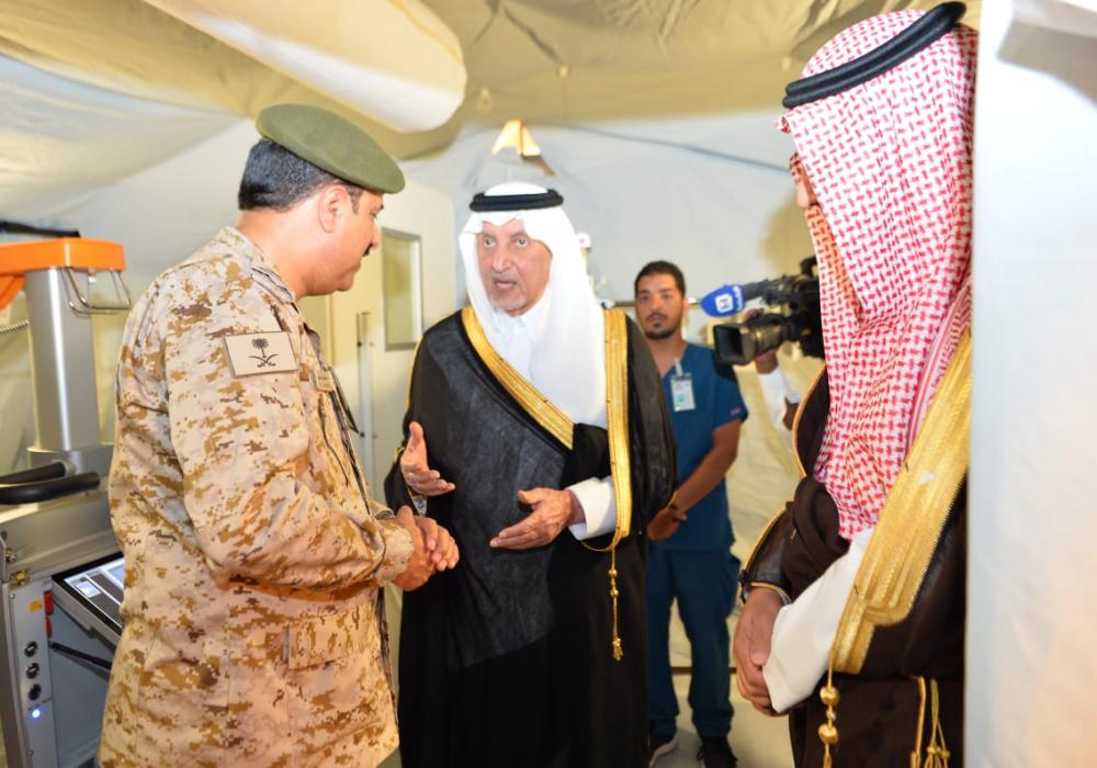 وكان الأمير خالد الفيصل، قد تفقد أمس المشاعر المقدسة، وكانت المحطة الأولى زيارة مستشفى القوات المسلحة الميداني بمشعر عرفات، واستمع إلى نبذة عن المرفق الذي تبلغ طاقته الاستيعابية 50 سريرا، مجهز بغرفة للعمليات والأشعة والكوادر الطبية، كما وقف أمير منطقة مكة المكرمة بعد ذلك على المشاريع التي أنجزتها هيئة تطوير المنطقة في المشاعر المقدسة، ومنها توسعة العديد من الطرق داخل المشاعر وتظليل ممرات المشاة، وإنشاء ممرات لفصل حركة المشاة عن الحافلات، كما اطلع على الخطة التشغيلية لأمانة العاصمة المقدسة بالمشاعر المقدسة التي شملت 27 مركزا للخدمات و23 ألف عامل وموظف يعملون على مدار 24 ساعة لتنفيذ الخطة التي تشمل جميع المجالات.