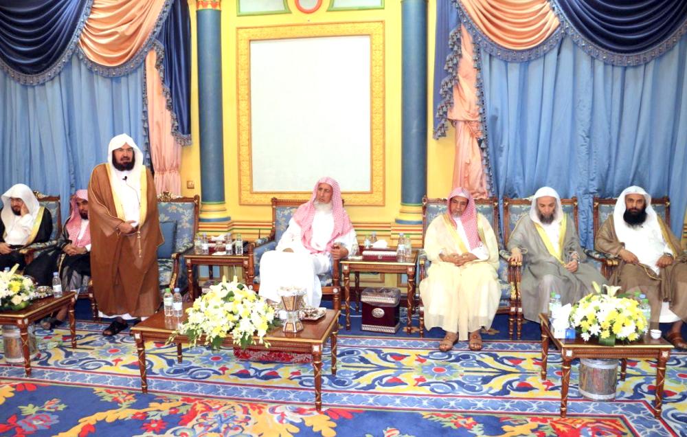 آل الشيخ مستقبلا السديس وابن حميد وعددا من العلماء. (واس)