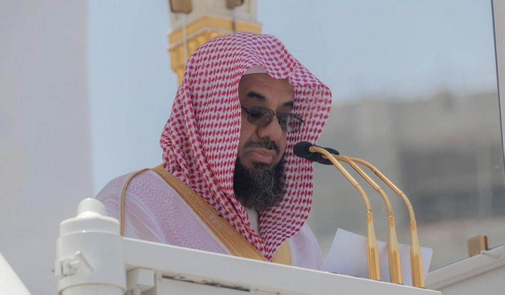 وخاطب حجاج بيت الله الحرام قائلا "لقد أكرم الله أمة الإسلام بنعمة يسر الوصول إلى بيته العتيق وبلوغ رحابه على هيئة لم يدركها أسلافنا الأولون؛ إذ كانوا يغيبون الزمان الطويل يقطعون فيه الفيافي والقفار والمفاوز والبحار، فلا يدري ذووهم أحياء هم أم أموات، حتى إن قاصد طريقه لهو شبيه بالمفقود، والعائد منه إنما هو كالمولود، ولقد ظل الحجيج على هذه الحال دهرا طويلا، حتى هيأ الله لهم من أسباب الحياة ما تغيرت به الأحوال واختصرت به الطرق والأزمان،حتى أصبح ذوو الحاج يرونه ويسمعون صوته حال وقوفه في عرفات والمشعر الحرام ومنى والمسجد الحرام، كما قيض الله بفضله وكرمه هذه البلاد المباركة لتكون راعية للحرمين الشريفين وقاصديهما، وهي تفخر بذلكم أيما فخر، وتشرف به أيما شرف خدمة لحجاج بيت الله وزوار مسجد رسوله ابتداء من إمامها وولي أمرها خادم الحرمين الشريفين وولي عهده وعضيده وانتهاء بآحاد أهلها، كلهم يرون خدمة الحرمين الشريفين شرفا ووساما لا يساومون عليهما، إذ يبذلون الغالي والنفيس في كل ما من شأنه راحة من وطئت أقدامهم أرضهم الطيبة المباركة، فلهم عليكم حجاج بيت الله الإكرام والتيسير.