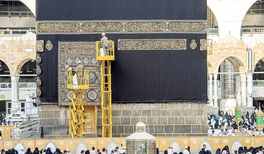الكعبة المشرفة تستبدل كسوتها وتتوشح بالحرير و220 كغم من الذهب والفضة