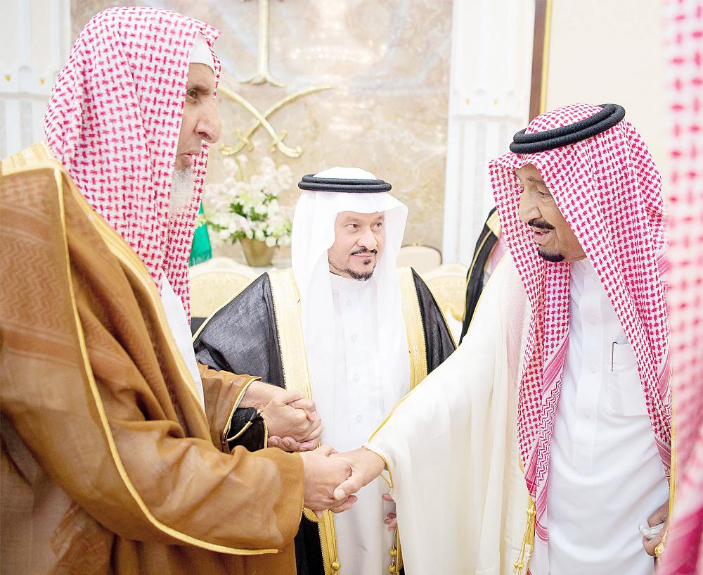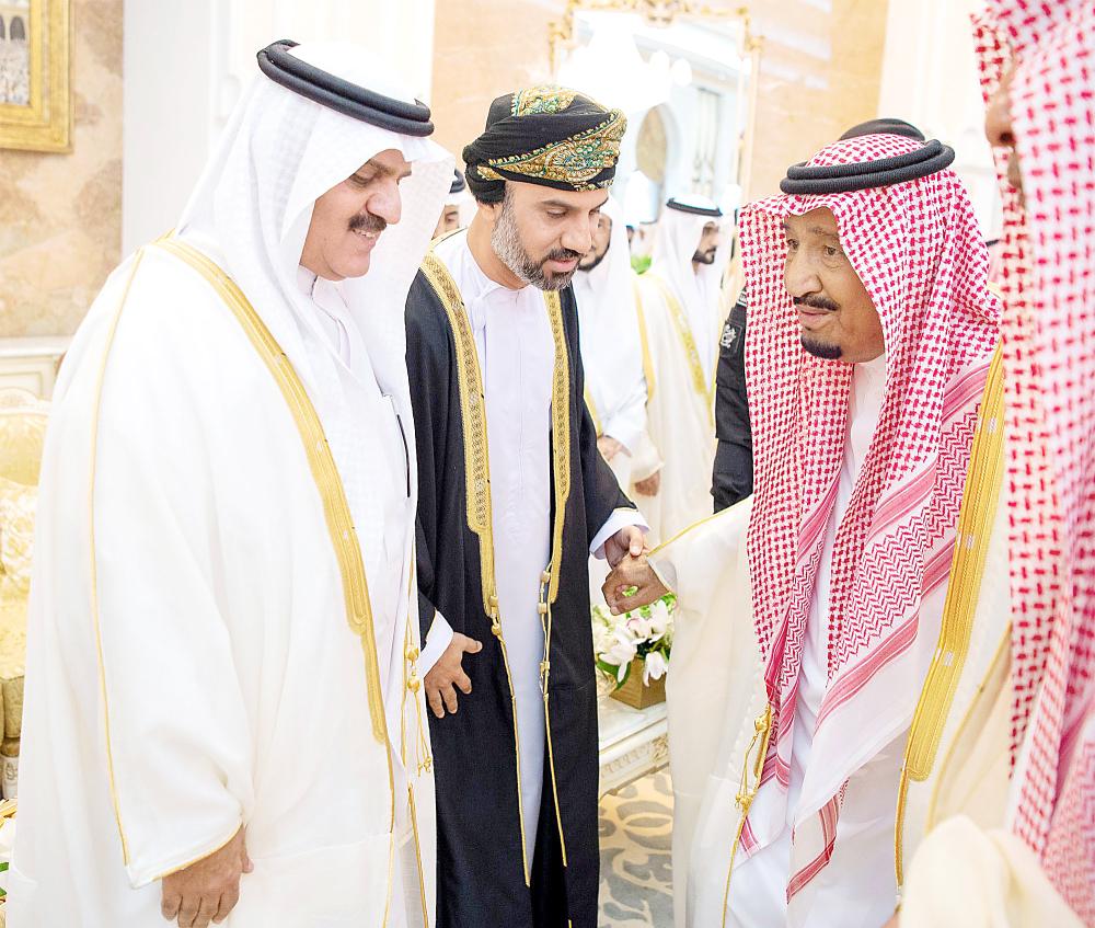 جاء ذلك في كلمته لدى استقباله في الديوان الملكي بقصر منى أمس، بحضور ولي العهد نائب رئيس مجلس الوزراء وزير الدفاع الأمير محمد بن سلمان بن عبدالعزيز، الأمراء، ومفتي عام المملكة، والعلماء والمشايخ، وكبار المدعوين من دول مجلس التعاون لدول الخليج العربية، والوزراء، وقادة القطاعات العسكرية المشاركة في حج هذا العام، وقادة الأسرة الكشفية في المملكة المشاركة في الحج، الذين قدموا للسلام عليه وتهنئته بعيد الأضحى المبارك.