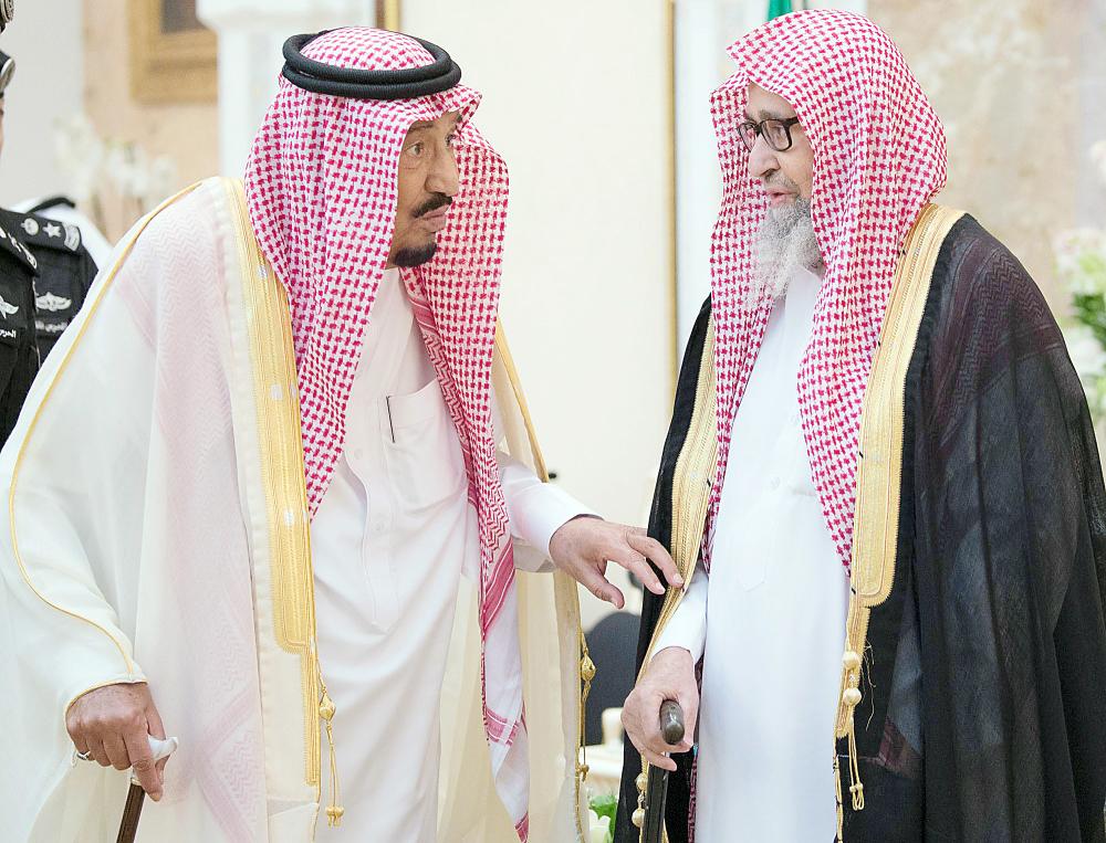 عقب ذلك تشرف الجميع بالسلام على خادم الحرمين الشريفين.