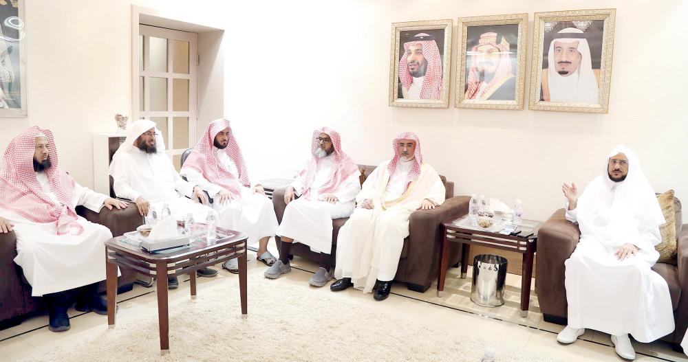 وزير الشؤون الإسلامية مستقبلا المشاركين في البرامج التوعوية للوزارة. (عكاظ)