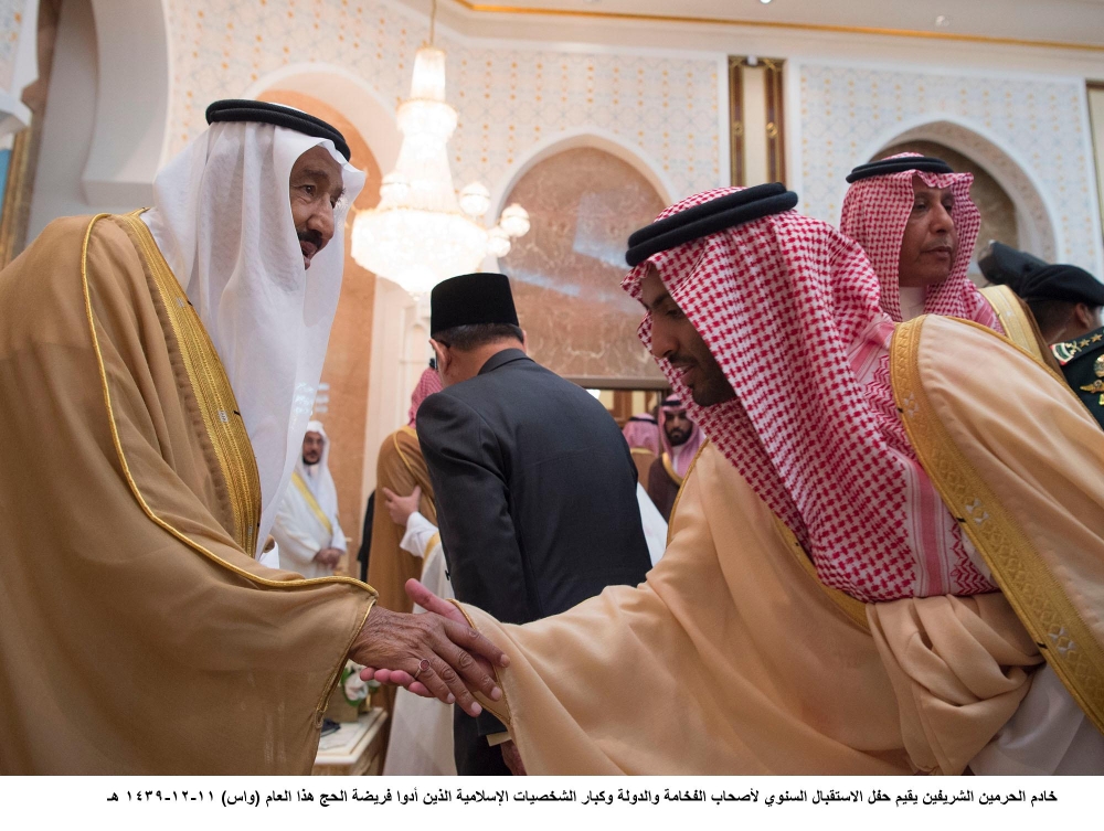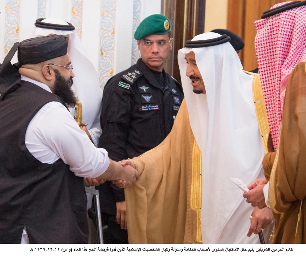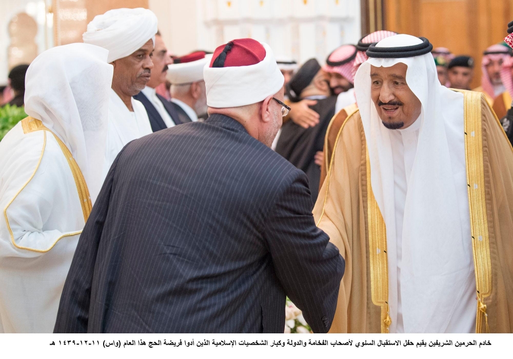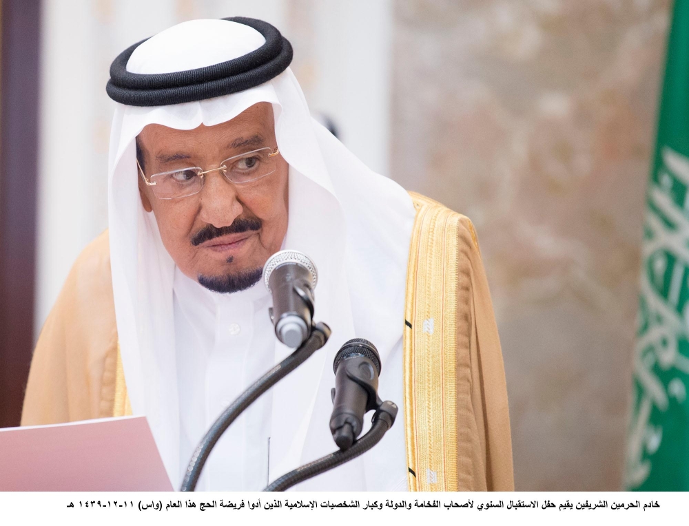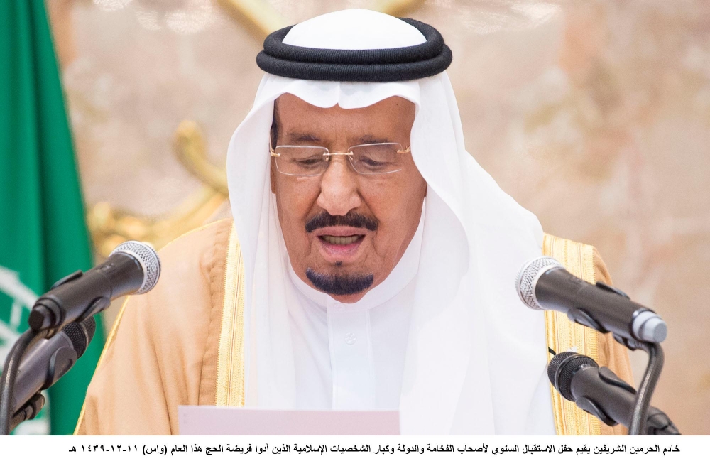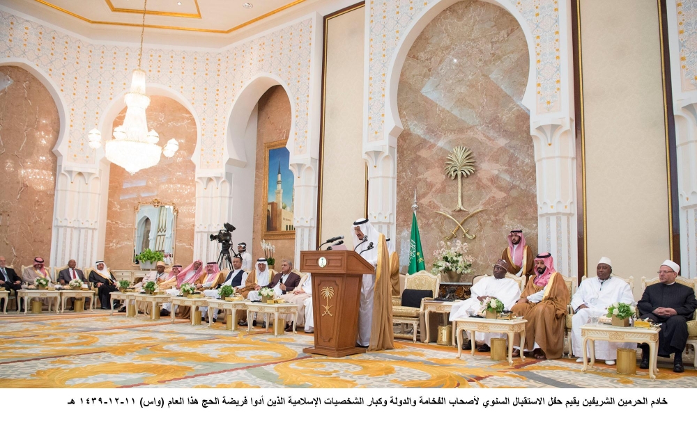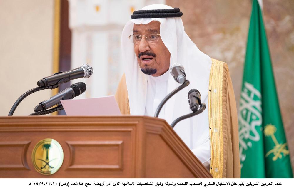 جاء ذلك في كلمته في الديوان الملكي بقصر منى أمس (الأربعاء)، بحضور ولي العهد نائب رئيس مجلس الوزراء وزير الدفاع الأمير محمد بن سلمان بن عبدالعزيز، خلال حفل الاستقبال السنوي لأصحاب الفخامة والدولة، وكبار الشخصيات الإسلامية، وضيوف خادم الحرمين الشريفين، وضيوف الجهات الحكومية، ورؤساء الوفود، ومكاتب شؤون الحجاج الذين أدوا فريضة الحج هذا العام.
