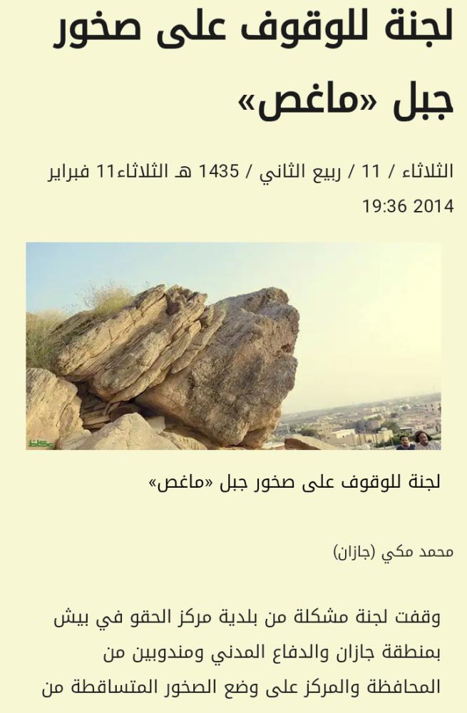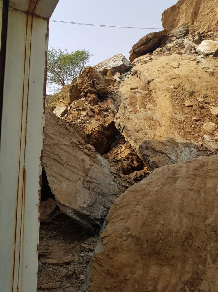 وقع يوم أمس ما حذّر منه سكان حارة رماح الواقعة تحت سفح جبل ماغص في قرية الحقو بمحافظة بيش طيلة السنين الماضية، وسقطت صخرة ضخمة طولها 10 أمتار وعرضها 5 أمتار من أعلى الجبل، داخل فناء أحد السكان دون أن تحدث أضرارا في الأرواح، وتسببت بتشققات في سقف المنزل وجدرانه.