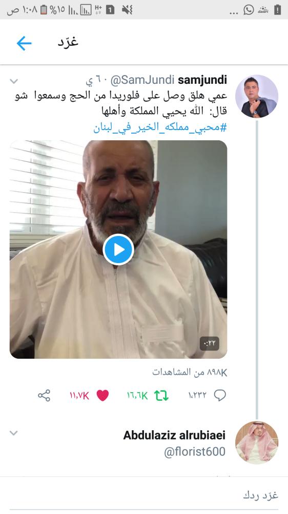عمي هلق وصل على فلوريدا من الحج وسمعوا شو قال: الله يحيي المملكة وأهلها #محبي_مملكه_الخير_في_لبنان pic.twitter.com/YZIqTP586u
