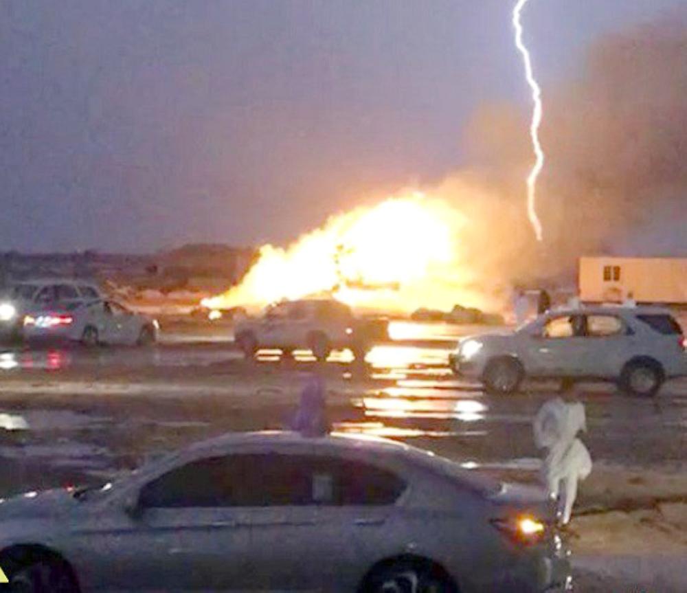 صاعقة تحرق شاحنة أعلاف على طريق الطائف ـ الرياض