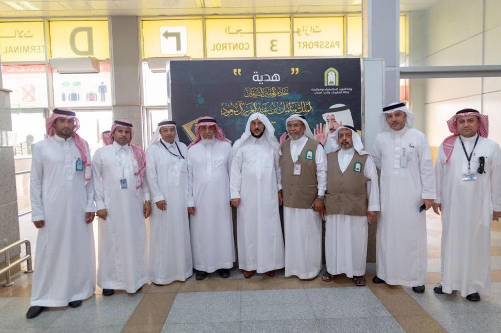وزير «الإسلامية» يوزع «هدية خادم الحرمين» على الحجاج المغادرين في مطار المؤسس