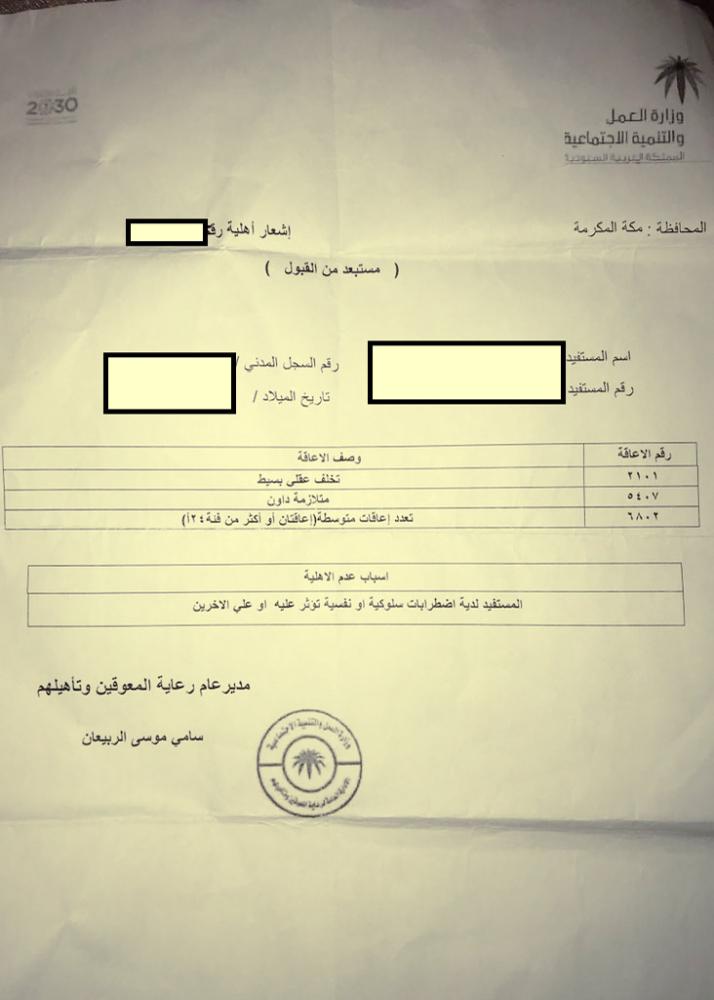 وأوضح معاذ العيافي، أنه فوجئ باستبعاد شقيقته من مركز التأهيل لأن نسبة الذكاء 50%، وقال«مازالت تستيقظ يوميا وتحمل حقيبتها للذهاب إلى مدرستها في المركز، ولا تعلم حقيقة الأمر، مما تسبب في أزمة نفسية لها، ويجب أن تكون هناك حلول عاجلة».