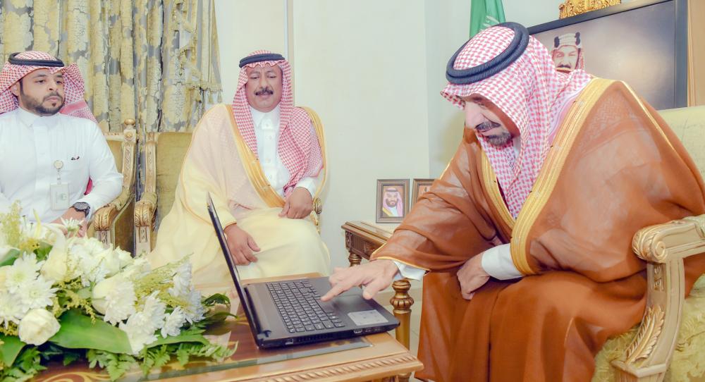 الأمير جلوي بن عبدالعزيز مدشنا مكتب الأحوال المدنية بيدمة.