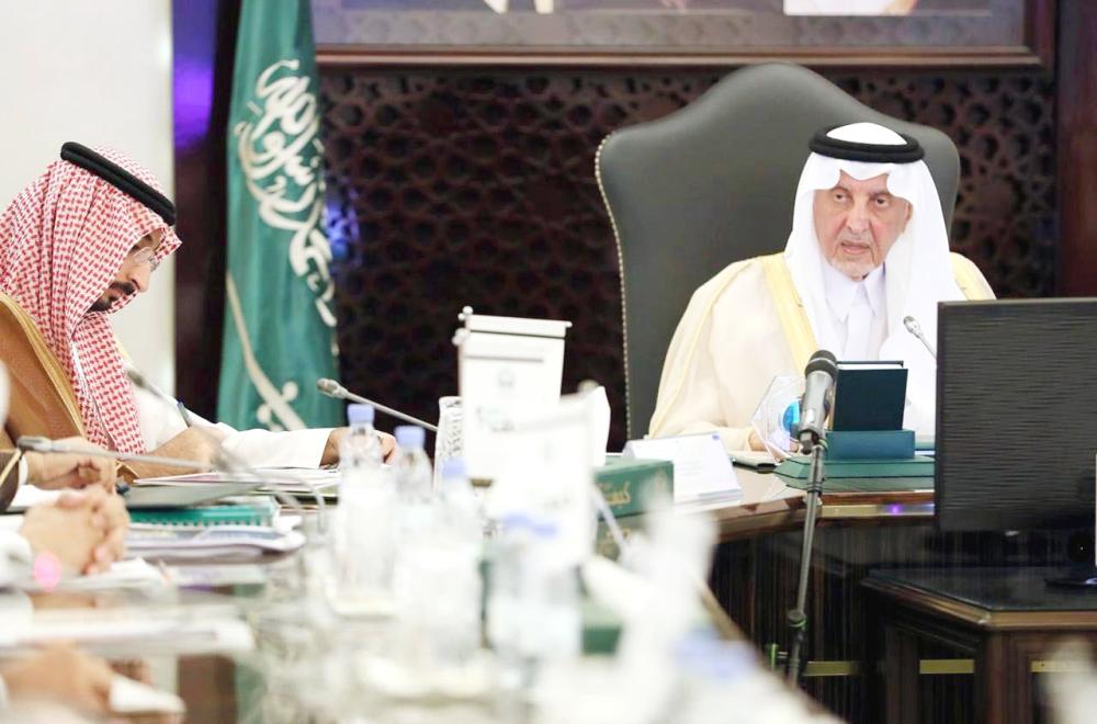 الأمير خالد الفيصل مترئسا اجتماع هيئة تطوير مكة وبجانبه الأمير عبدالله بن بندر. (عكاظ)