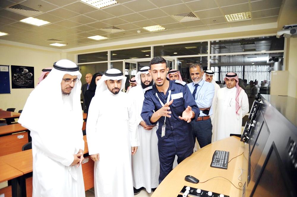 الأمير الدكتور فيصل المشاري، أحمد الفهيد يستمعان لشرح عن التدريب والتأهيل.