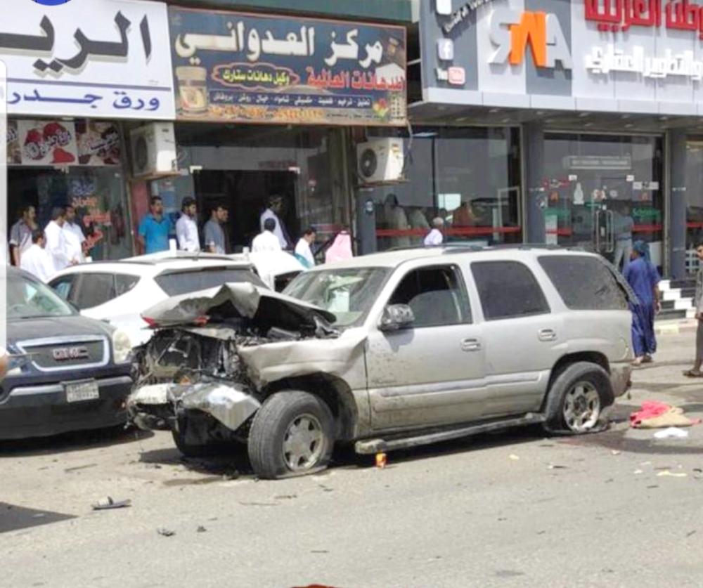 إحدى السيارات عقب اصطدامها. (عكاظ)