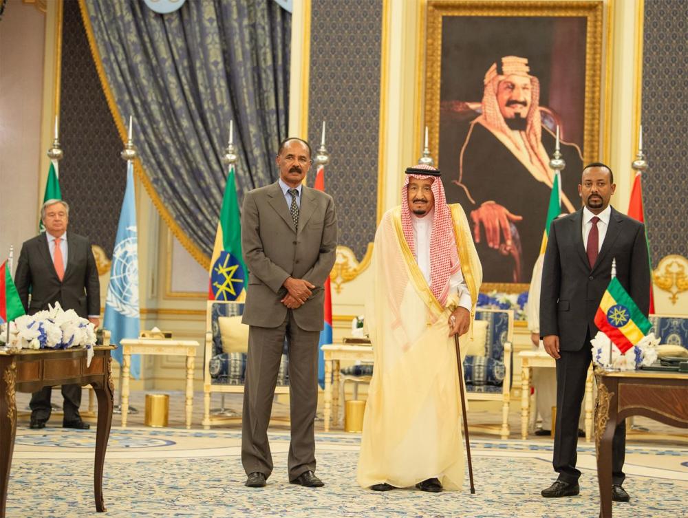 برعاية خادم الحرمين الشريفين الملك سلمان بن عبدالعزيز آل سعود وقع رئيس دولة إريتريا أسياس أفورقي، ورئيس وزراء أثيوبيا آبي أحمد علي، اليوم (الأحد) اتفاقية جدة للسلام بين جمهورية أثيوبيا الديمقراطية الاتحادية ودولة إرتيريا، بحضور ولي العهد نائب رئيس مجلس الوزراء وزير الدفاع الأمير محمد بن سلمان بن عبدالعزيز، و الأمين العام للأمم المتحدة أنطونيو غوتيرس، ووزير الخارجية والتعاون الدولي بدولة الامارات العربية المتحدة.الشيخ عبدالله بن زايد آل نهيان