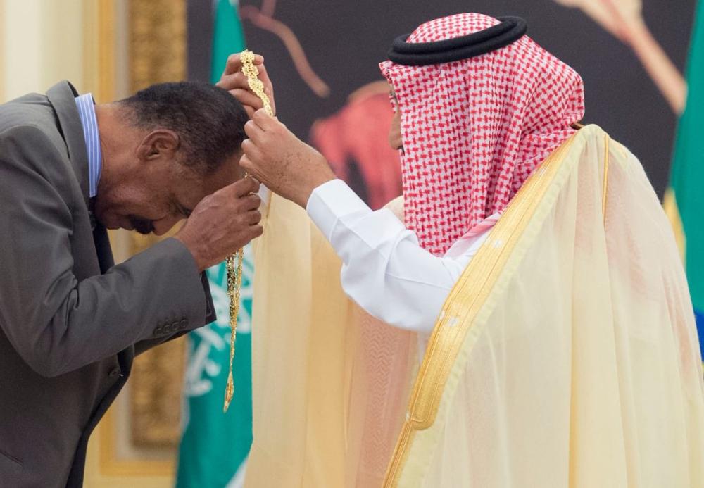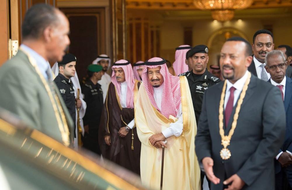 وقلد خادم الحرمين الشريفين الرئيس الأريتري أسياس أفورقي، ورئيس الوزراء الأثيوبي آبي أحمد علي قلادة الملك عبدالعزيز، بحضور مستشار خادم الحرمين الشريفين أمير منطقة مكة المكرمة الأمير خالد الفيصل بن عبدالعزيز، وزير الدولة عضو مجلس الوزراء مستشار خادم الحرمين الشريفين الأمير الدكتور منصور بن متعب بن عبدالعزيز، و وزير الداخلية الأمير عبدالعزيز بن سعود بن نايف بن عبدالعزيز، والوزير المرافق للرئيس الأريتري وزير الدولة عضو مجلس الوزراء الدكتور عصام بن سعد بن سعيد، ووزير الدولة عضو مجلس الوزراء رئيس الديوان الملكي خالد بن عبدالرحمن العيسى، ووزير الخارجية عادل بن أحمد الجبير، و وزير المالية محمد بن عبدالله الجدعان، والوزير المرافق لدولة رئيس الوزراء الأثيوبي وزير الدولة لشؤون الدول الافريقية أحمد بن عبدالعزيز قطان، ومندوب المملكة الدائم لدى منظمة الأمم المتحدة عبدالله بن يحيى المعلمي، وسفير خادم الحرمين الشريفين لدى أثيوبيا عبدالله بن فالح العرجاني، والقائم بالأعمال بالنيابة بسفارة خادم الحرمين الشريفين لدى إريتريا الدكتور عبدالله بن سلطان الشريف.