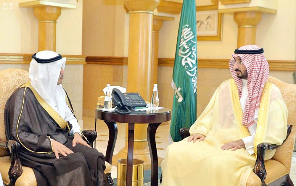 الأمير عبدالله بن بندر خلال لقاء مدير الجامعة. (عكاظ)
