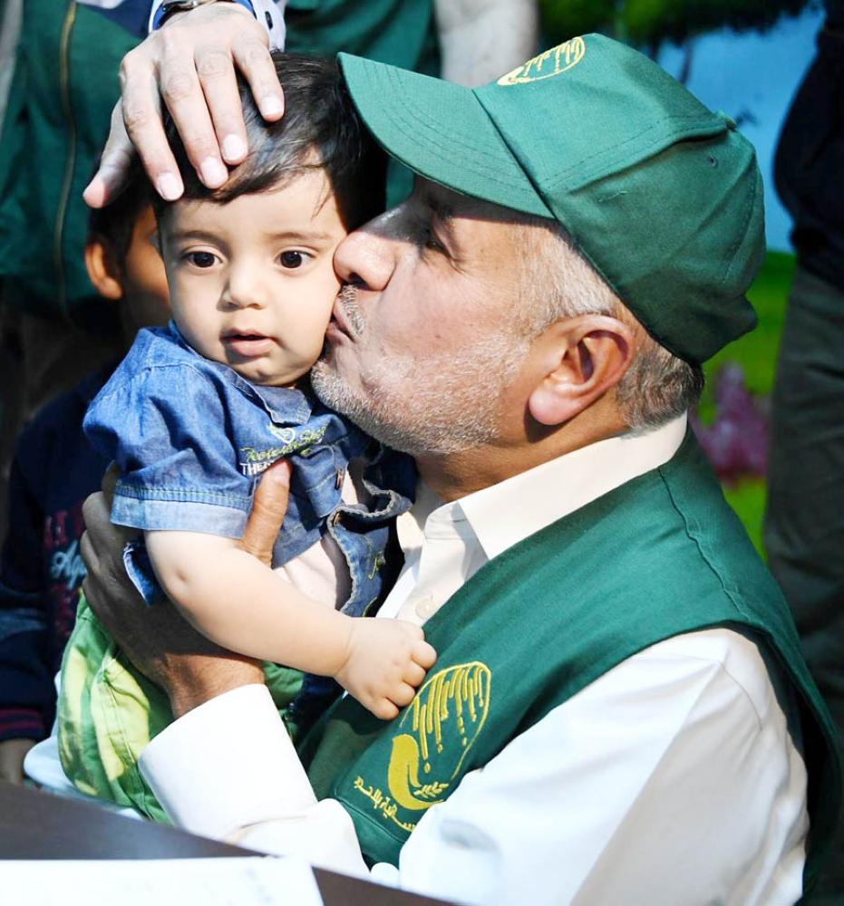 د. الربيعة مقبلا أحد الأطفال في مخيم الزعتري.